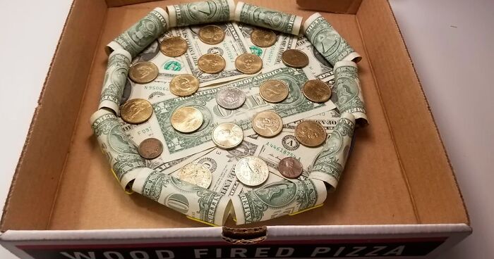 Mi abuelo me ha hecho una pizza con dinero para regalarme