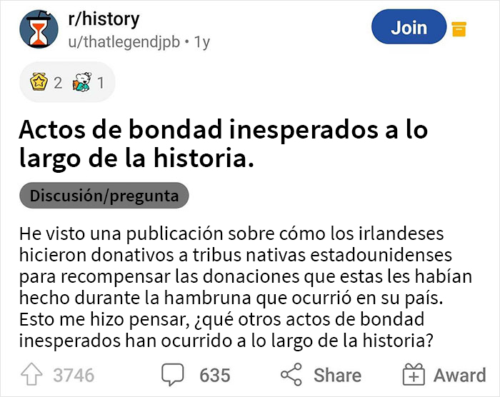Descubrimos una publicación en el subreddit r/history que tiene muchos ejemplos de esto. Todo comenzó cuando el usuario ThatLegendjpb le pidió a la comunidad que describiera cómo fueron sus momentos de bondad inesperados favoritos. ¡Resulta ser que a lo largo de la historia ha habido muchos de ellos!