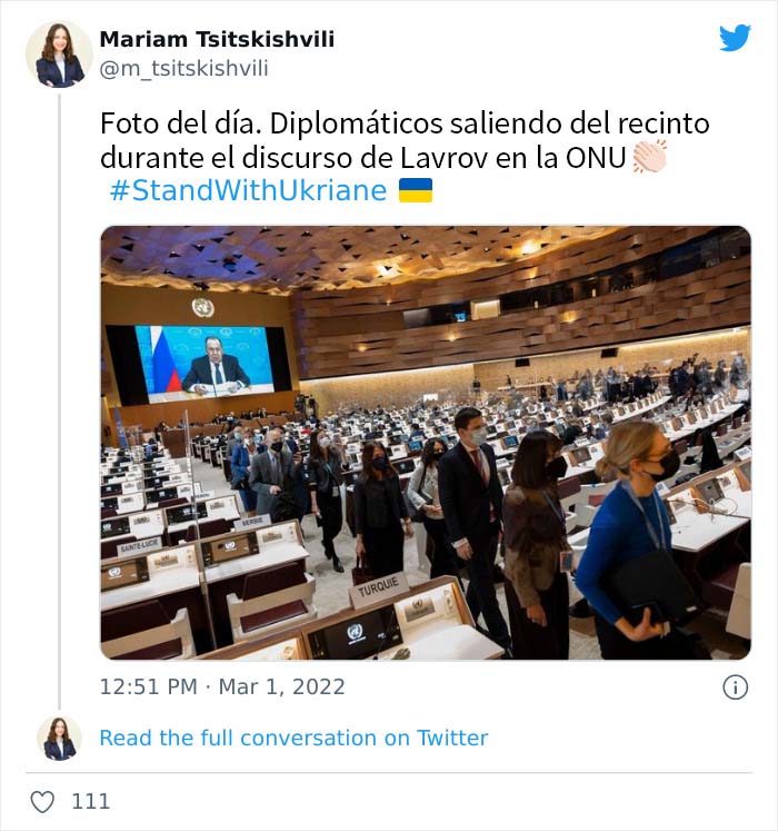 Otros países muestran su apoyo saliendo a la calle también, rodeando la embajada rusa o vandalizándola, los directores ejecutivos están rompiendo relaciones comerciales con empresas que se benefician de la economía rusa, e incluso las redes sociales se están involucrando en todo esto.