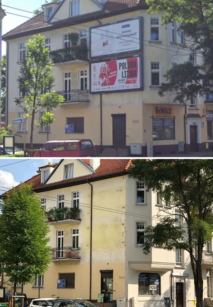 "La ciudad de Gdańsk ha cambiado enormemente en los últimos meses tras la adopción de la llamada Ley del Paisaje. Se han eliminado casi todos los anuncios de gran formato de los distritos centrales de Gdańsk. Algunos de ellos han estado cubriendo literalmente edificios enteros durante décadas y ahora por fin podemos ver la arquitectura y resultó que algunos de los edificios están realmente muy bien diseñados", dijo el miembro del equipo de 'Pogromcy Reklamozy' a Bored Panda.