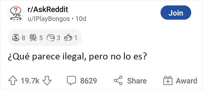 Recientemente, el usuario de Reddit IPlayBongos estaba navegando por la plataforma cuando se encontró con la pregunta "¿Qué parece ilegal, pero no lo es?" en uno de los subreddits que sigue. "No recuerdo ahora cuál, pero era un post que tenía... una respuesta graciosa (creo que era... sobre el sentimiento de culpa por salir de un supermercado sin comprar nada)", comentó a Bored Panda.