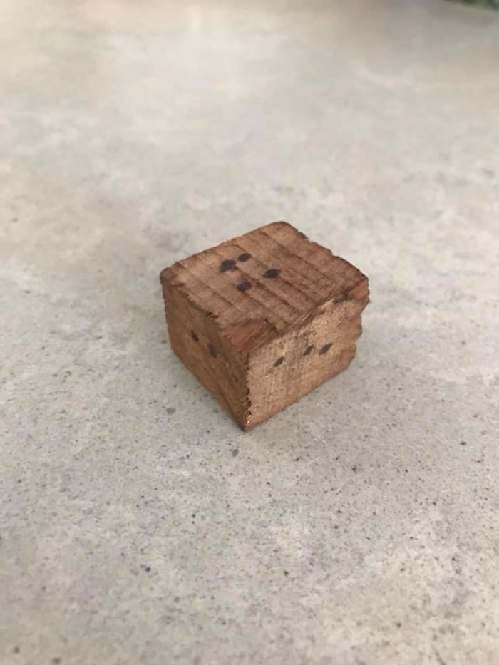 Es un dado que hizo mientras fue prisionero de guerra en la 2ª Guerra Mundial.
