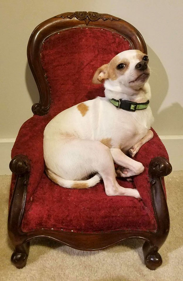 Encontré este sofá por 6$ en un mercadillo de la iglesia. Se convirtió en el favorito de mi gata