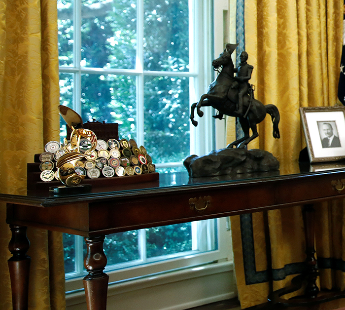Trump solía mostrar su colección ‘Challenge Coin’ en el aparador