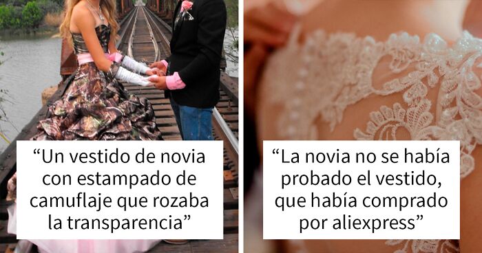 Un vestido de novia con estampado de camuflaje que rozaba la transparencia. Caminaron hacia el altar con la canción de Scooby Doo. No, nadie sabe por qué eligieron esa canción, ni siquiera la propia pareja. Se divorciaron unos meses más tarde después de que ambos dejaron de limpiar la casa como acto de rebeldía hacia el otro.