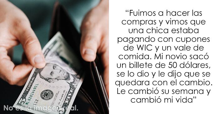 Fuimos a hacer las compras. Eran alrededor de las 9 de la noche, ambos habíamos cobrado. La joven que estaba en la fila para pagar tenía un bebé muy pequeño y estaba pagando con cupones WIC y una tarjeta EBT de vales de comida. El total de su compra era de unos 22 dólares y ella solo tenía 20 en la mano. Se la veía desanimada y devolvió lo único que probablemente había gastado de más: un chocolate y una bebida energética. Además de eso, solo llevaba comida para bebé, pañales, arroz, bananas, leche en polvo, toallitas, lo mínimo. Me di la vuelta para decirle a mi ahora marido que me diera mi billetera.