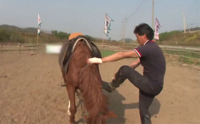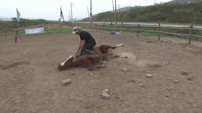 Este caballo tan teatrero se llama Jingang, y sus ambiciones van más allá de ser un mero corcel. Parece que no le gusta que otros cabalguen sobre él, como a todo buen caballo, y hace todo lo posible para evitar llevar a cabo su trabajo. Jingang simula «morirse» de forma muy dramática. Es estúpido y divertido. Y es la prueba de que algunos animales prefieren vaguear antes de ganarse el pan (o las zanahorias en este caso) como hacemos todos: con el sudor de nuestra frente.
