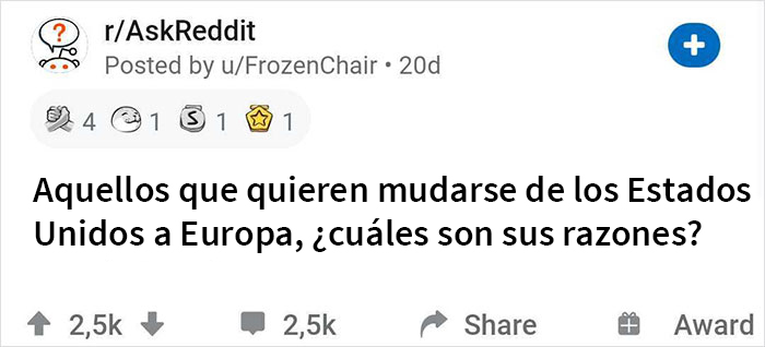 Así que para saber cuáles son las razones exactas por las que los ciudadanos norteamericanos se despidieron de su adorada tierra y se mudaron a otro país, hubo que preguntarles a las personas mismas. Tenemos unas respuestas muy esclarecedoras gracias a esta publicación en Reddit en la que se les pidió a las personas que quieren mudarse o que ya se mudaron a Europa que contaran la razón.