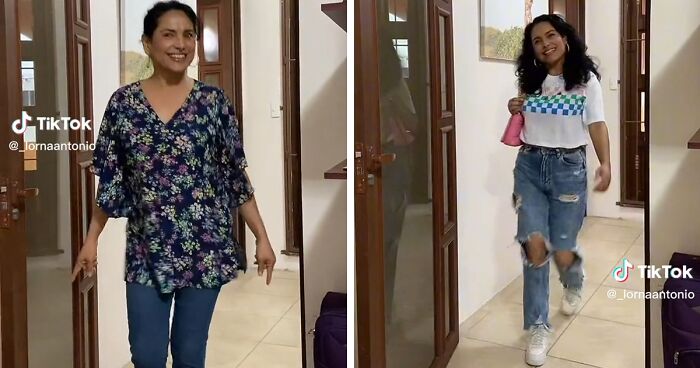 Esta tendencia muestra a las mamás entrando en la habitación vestidas con su ropa habitual. Luego salen y vuelven a entrar. Pero esta vez llevan la ropa de sus hijas y posan como supermodelos.
