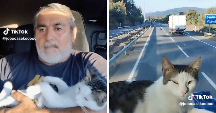 Joaquín, oriundo de la ciudad de Los Ángeles, Región del Biobío, Chile, tiene una compañera muy especial. Lo acompaña su gata “Chikitita”, que hace poco celebró su primer año de vida, y juntos recorren las carreteras chilenas. El camionero comparte en una serie de videos en TikTok, bajo el nombre de @jooooaaakooooo, los viajes que realiza con su mascota. La peludita no podría estar más feliz acompañando a su papá humano. Como era de esperarse, Chikitita se hizo viral y sus más de 42.000 seguidores esperan con ansias novedades sobre ella.