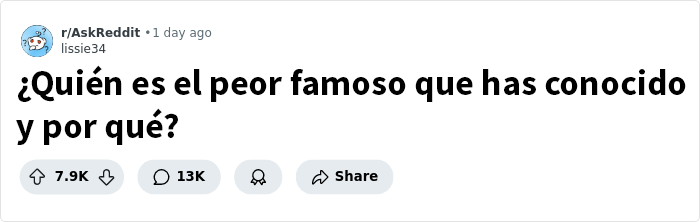Pero no hace falta seguir obsesivamente a un famoso para formarse una opinión sobre él. A veces, basta con conocerlo para saber al instante si es genial o cruel. Recientemente, un internauta preguntó en un hilo de discusión: "¿Quién es el peor famoso que has conocido y por qué?".