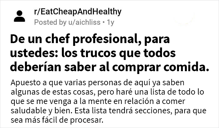 Pero un chef profesional, conocido como u/Aichliss en Reddit, ha hecho un servicio a la comunidad al listar todas las formas en las que podemos servirnos de la tienda de comestibles. Punto por punto, el chef enumeró cosas muy útiles que todos deberíamos saber antes y durante las compras, para poder comer barato, saludable y bien. Como podrán imaginarse, aquí no hablamos de pollo al curry listo y congelado.