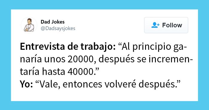 Los chistes de padres son un tema controvertido: hay quien los adora y quien piensa que son la forma más baja de humor. La mayoría somos culpables de contar un chiste malo alguna vez, pero la cuenta de Instagram Dad Says Jokes está totalmente dedicada a ello. Tiene casi 2 millones de fieles seguidores, así que se lo puede considerar como el Padre de todas las cuentas de chistes de padres en redes sociales (esto también ha sido un chiste malo).