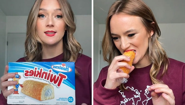 Hoy voy a probar los Twinkies. No los tenemos en Nueva Zelanda, pero he oído hablar mucho de ellos, así que voy a probarlos. He oído que tienen una esperanza de vida que es como, más larga que mi vida, así que tengo miedo. No sé cómo me siento al respecto. ¿Qué mierda, americanos, por qué? Esto no es para mí.