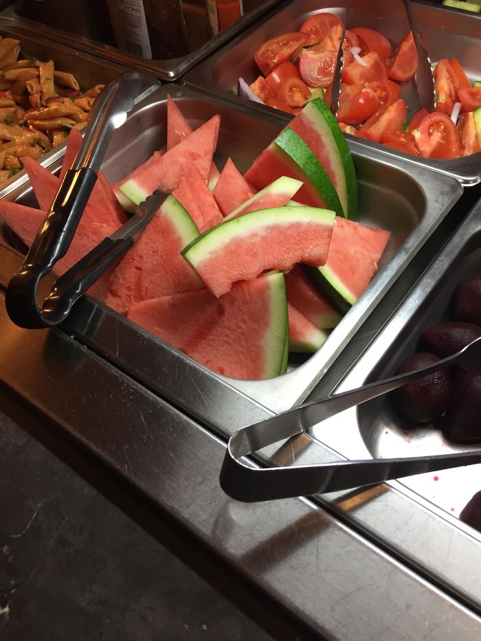 Dejar que tus hijos de 9 años comieran la sandía de la ensalada y la volvieran a dejar allí. También estaban tocando la fruta