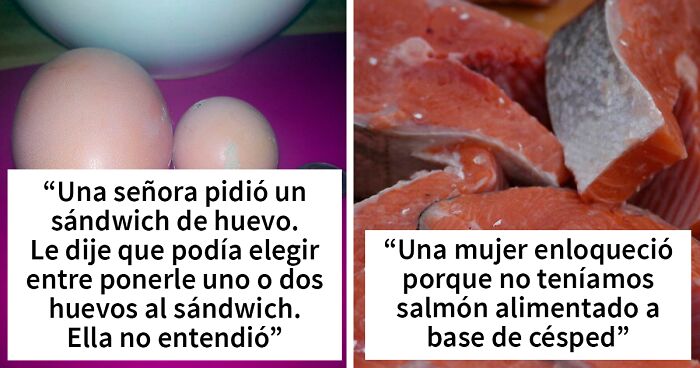 Sin embargo, no todo tiene que ser tan deprimente en esta industria. De vez en cuando, las personas se encuentran con clientes que dicen y hacen cosas muy inofensivas pero confusas. Ya sea que pregunten si el pescado está alimentado a base de césped o pidan algo que está totalmente fuera de tu poder, seguramente será divertido para varios miembros del personal.