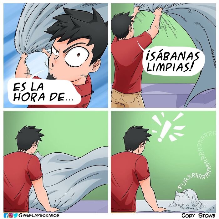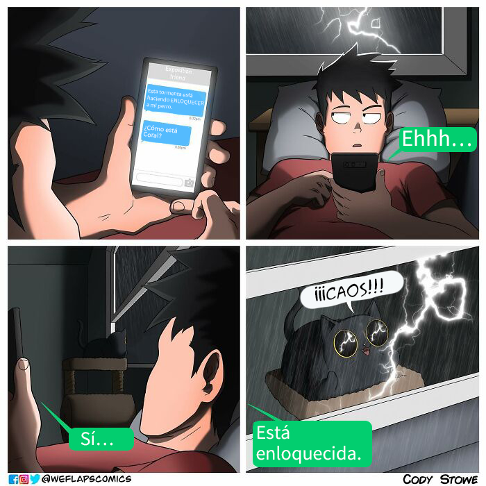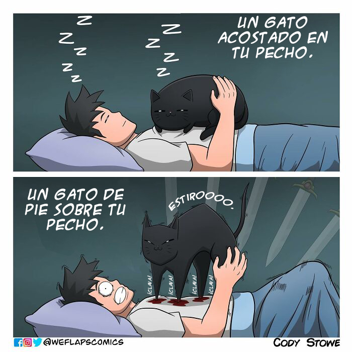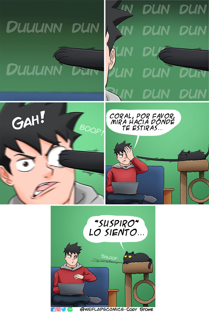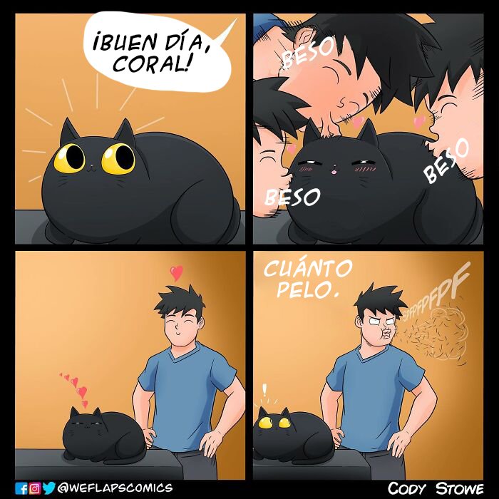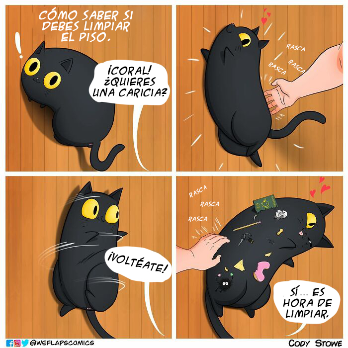 Cody y su gata Coral llevan una increíble vida juntos y, por fortuna, podemos verlo en estas hilarantes tiras de cómic. El hecho de que Coral sea una gata inspira muchos de los escenarios que piensa este artista; pero, aun así, Cody ha comentado que le preocupa quedarse sin ideas.