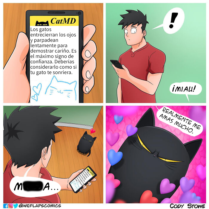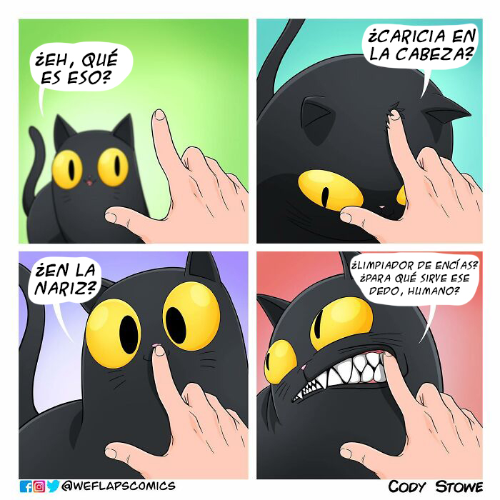 Cody no es el primer ni el único artista que ha usado las redes para relatar su día a día con su compañera gatuna. Otra de las dibujantes que se ha vuelto muy popular durante estos últimos años es la joven conocida como @cosadegatos.ok en Instagram. Esta muchacha, llamada Cande, es una artista de historietas que comparte divertidas e informativas publicaciones sobre gatos en su cuenta de Instagram. Así, con sus dibujos, no solo podemos divertirnos y sentirnos identificados, sino que también ¡seremos capaces de aprender mucho más sobre nuestros amigos peludos!