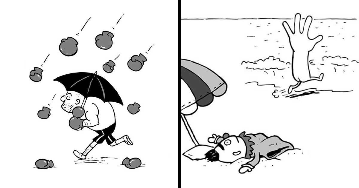 Si buscas algo que te alegre el día, te sugerimos estos cómics minimalistas de una sola viñeta de Karlo Ferdon. Desde hace varios años, Karlo ha creado estas obras sin palabras, (en su mayoría) en blanco y negro, centradas en situaciones ridículas y casi surrealistas o fantasiosas en las que los seres humanos se fusionan con objetos o los objetos inanimados actúan como seres humanos de nuestro mundo actual.