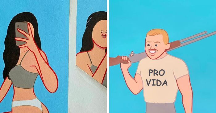 Cuando alguien acuñó la frase "hagas lo que hagas, no olvides sonreír", no imaginaron que Joan Cornella tomaría esta idea y la llevaría a los extremos impíos de la comedia negra. Pero quizás sea lo mejor, ya que esas sonrisas son lo único que protege nuestra mente de la brutalidad de las imágenes que retrata; una sonrisa nos hace sentir seguros mientras vemos cómo se desarrollan las escenas horriblemente gráficas de sus ilustraciones. Es lo único que nos recuerda que nada de esto es real y, a pesar de los matices y comentarios siniestros demasiado reales, su estilo encuentra su hogar en el reino de lo surrealista. Pero probablemente no necesites una descripción o introducción de sus obras; lo más probable es que lo hayas visto antes en Facebook o Instagram. Con un total de 7 millones de seguidores en las plataformas de redes sociales, sus trabajos se distribuyen por doquier entre los amantes del humor negro. ¡Disfrútalos, o no!