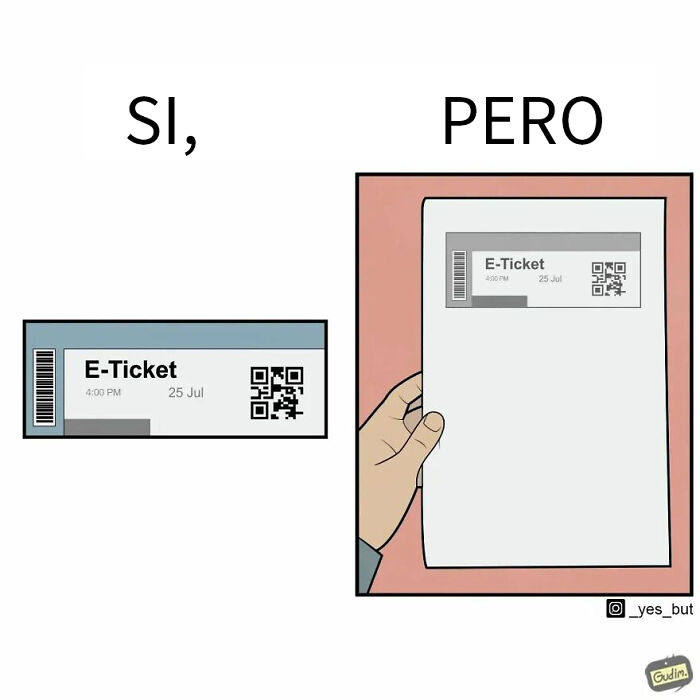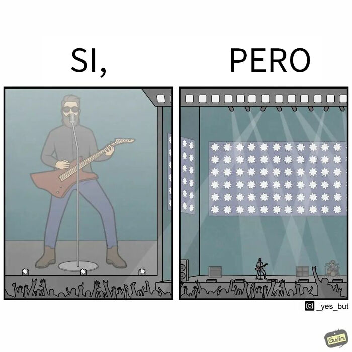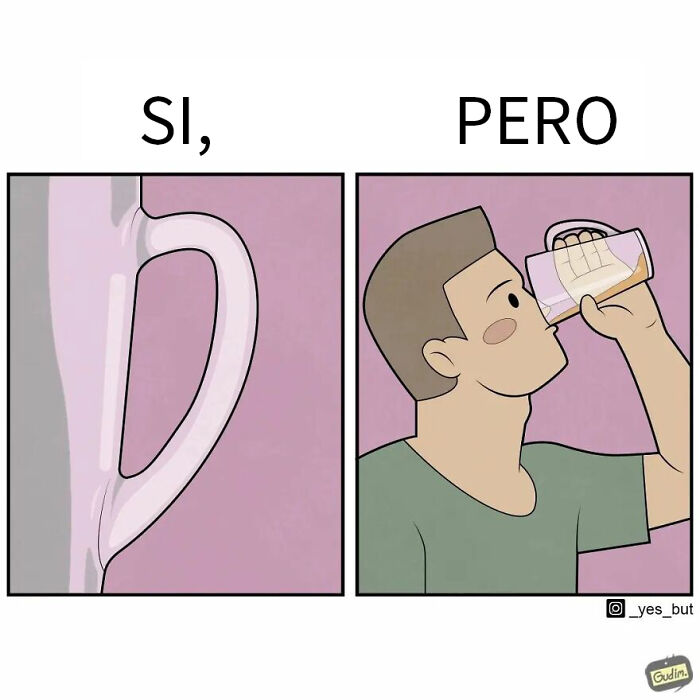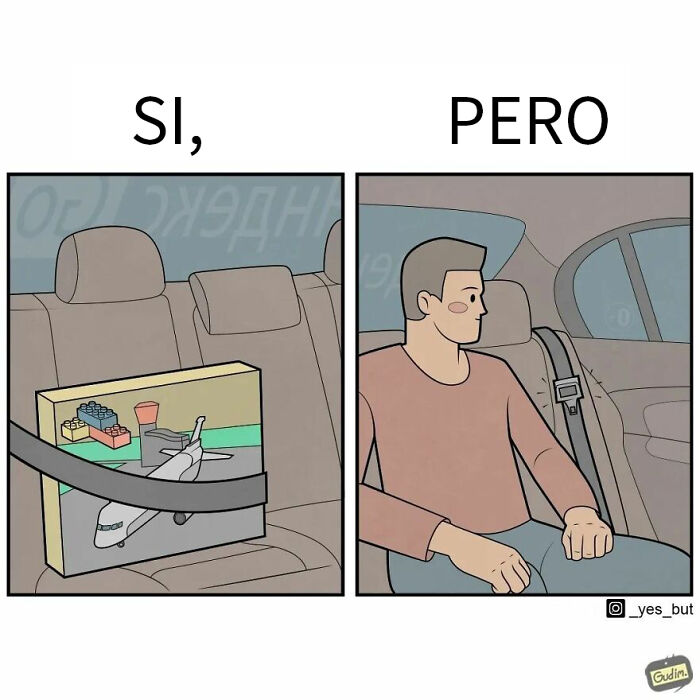 La observación es la clave para encontrar estas divertidas y a veces absurdas contradicciones. El artista se ha entrenado para ver el mundo a través de un prisma que dice "sí, pero". Pero hemos notado que algunas personas también se adaptaron a esta forma de verlo. El artista una vez compartió que este formato lo emociona mucho.