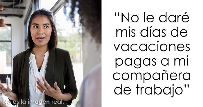 Esto deja a un 23% de los estadounidenses sin vacaciones pagadas y a un 22% sin días festivos remunerados. Así que, como podrán imaginar, si un empleado recibe días libres pagados, es algo que se toma muy en serio. No es de extrañar que esta trabajadora de 25 años sin hijos, autora de esta publicación en r/AITA, diera una respuesta negativa cuando su colega de 41 años con hijos le pidió que compartiera sus días de vacaciones acumulados.