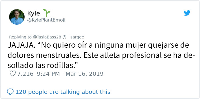 Parece ser que la menstruación no es nada comparado a otras formas de sangrar, como por ejemplo, desollarse las rodillas. Este hombre escribió sobre ello en Twitter, afirmando que las mujeres dramatizan demasiado sobre sus dolores, y que nada se podía comparar a desollarse las rodillas durante un partido. En ese caso, ¿habrá imaginado cómo es ser una atleta femenina? En respuesta a su ridícula afirmación, las mujeres de internet no dudaron en ponerle en su sitio.