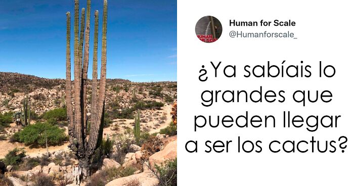 En cualquier caso, resulta que hay una página de Twitter dedicada a compartir fotografías con estructuras, objetos o seres mayoritariamente gigantescos, pero a veces minúsculos, con un humano convenientemente en algún lugar de la composición visual para que puedas captar la escala de las cosas.