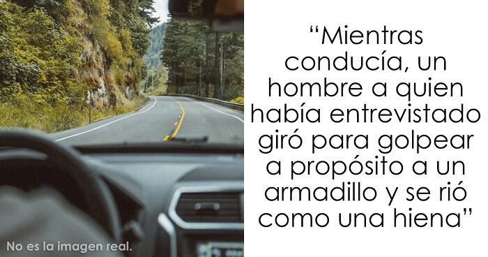 Entrevisté a un tipo y decidí contratarlo. Pero, primero, quería saber cómo conducía, así que le sugerí almorzar juntos y le dije que yo pagaría. Nos fuimos y llevó su camión. Mantenía el vehículo bastante limpio, condujo bien y tenía buenos modales en la mesa. Era un buen representante para la empresa, si lo necesitábamos. Así que pagué y volvimos en su camión. Estábamos yo, el jefe y otro tipo. Cuando volvíamos (en una carretera de dos carriles en una zona un poco campestre), giró para golpear a propósito a un armadillo y se rió como una hiena. Volvimos, el jefe me miró y yo sacudí la cabeza disimuladamente. Él asintió. Así que le dijimos a este hombre que teníamos algunas personas más para entrevistar (no era cierto) y eso fue todo. A veces pienso en ello y me pregunto, ¿por qué? Era una criatura inofensiva y él se salió de su camino para matarla. Ese no es nuestro tipo de gente.