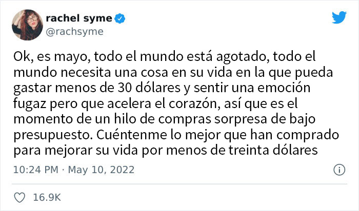 Más tarde, depende realmente de la compra si nos arrepentimos o no. En algunas ocasiones, la compra impulsiva resulta ser lo mejor que te ha pasado ese día, o incluso esa semana. Solo hay que echar un vistazo a este hilo de la usuaria de Twitter Rachel Syme. "Ok, es mayo, todo el mundo está agotado, todo el mundo necesita una cosa en su vida en la que pueda gastar menos de 30 dólares y sentir una emoción fugaz pero que acelera el corazón", escribió y añadió que: "Es el momento de un hilo de compras sorpresa de bajo presupuesto. Cuéntenme lo mejor que han comprado para mejorar su vida por menos de treinta dólares".