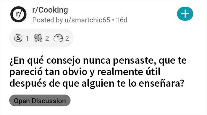 Y este hilo publicado en el subreddit Cooking es una gran manera de hacerlo. "¿En qué consejo nunca pensaste, que te pareció tan obvio y realmente útil después de que alguien te lo enseñara?", preguntó el Redditor Smartchic y las respuestas comenzaron a llegar. Desde cosas como hacer una mermelada con unas tristes moras a punto de estropearse y rociar un poco de agua antes de meter en el microondas los restos de comida para ablandarlos y humedecerlos, es una locura lo sencillos que son estos trucos tan obvios. ¿Tienes alguno que compartir también? Cuéntanoslo en la sección de comentarios más abajo.