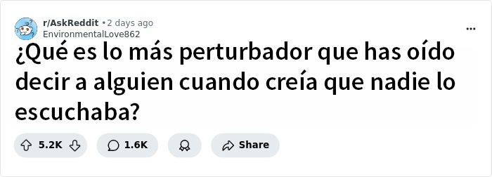 Alguien preguntó en internet: "¿Qué es lo más perturbador que has oído decir a alguien cuando creía que nadie lo escuchaba?", y los internautas no se guardaron nada a la hora de responder. Aquí tienes nuestra colección de algunas de las más curiosas.