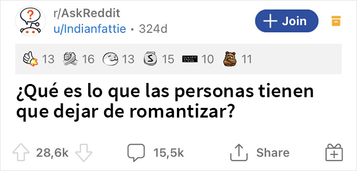 En Bored Panda recientemente descubrimos estas tres publicaciones (1, 2, 3) que hacían esencialmente la misma pregunta: ¿Qué es lo que la sociedad romantiza demasiado? Y a juzgar por la abundancia de votos a favor y comentarios, pensamos que sería una buena idea compartir algunas de las respuestas con ustedes, queridos Pandas. Desde desórdenes alimenticios hasta adicciones al trabajo, a continuación podrás leer algunos de los más populares, y cuéntanos si estás de acuerdo con ellos en los comentarios.