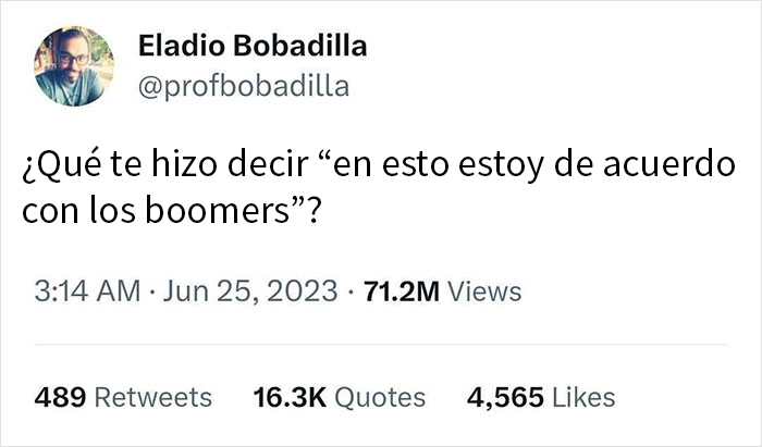 Así que el historiador Dr. Eladio B. Bobadilla decidió cambiar el debate público y tuiteó: "¿Qué te hizo decir: "En esto estoy de acuerdo con los boomers?'".