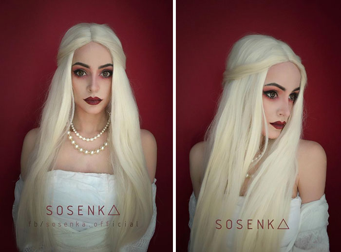 Sosenka tiene un graduado en Arquitectura del paisaje y su interés en el maquillaje de efectos especiales comenzó en 2014, como un hobby. Rápidamente evolucionó en algo más grande. Me enamoré de lo que hago," escribe Sosenka. También cree que ha aprendido mucho por el camino: " Desde varios métodos técnicos de mapear las imágenes de los personajes a fortalecer ciertos rasgos de la personalidad, como la paciencia, la precisión y la sucesión en búsqueda de una meta." Eventualmente, esto la llevó a probar el cosplay, y fue en este área donde Sosenka descubrió su verdadero potencial.
