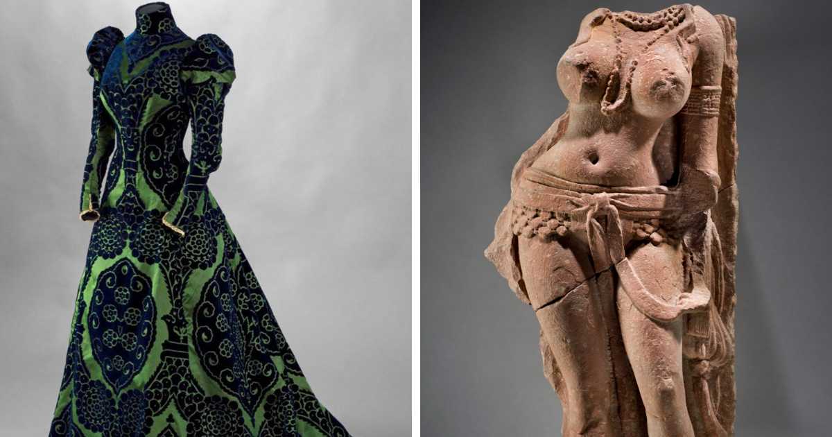 Vestido de té, Francia, ~1897. Perteneció a la condesa Greffulhe, que a menudo elegía ropa de un color verde brillante porque complementaba su pelo caoba