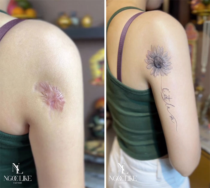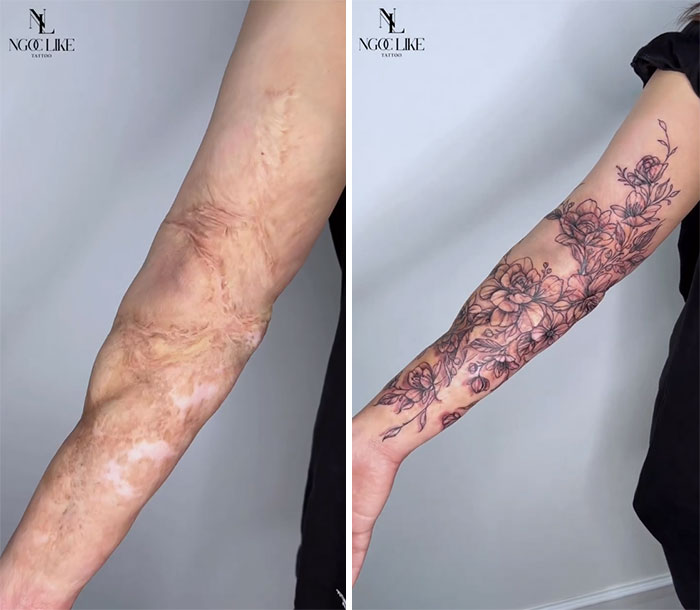 "Cuando vi la gran diferencia que suponía para la confianza de mis amigos y cómo influía positivamente en su imagen a lo largo de su vida, me comprometí a desarrollar mis habilidades en este campo, con la esperanza de poder ofrecérselo al mayor número de clientes posible", explica a Bored Panda en un correo electrónico, señalando que tatuar sobre cicatrices era un gran tabú durante sus años de aprendizaje.
