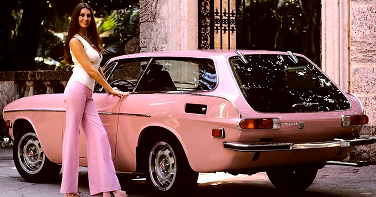 Pantalones de campana rosas, plataformas rosas y su Volvo rosa (1973)