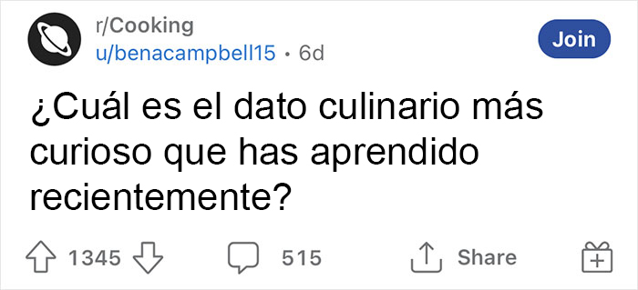 Si tienes apetito de información culinaria fascinante, tenemos la lista perfecta para que la devores. A continuación, encontrarás algunos de los datos culinarios más curiosos que los Redditors han compartido, recientemente, así que ¡buen provecho! Y no te olvides de votar los datos que estás deseando guardar en la manga de tu uniforme de chef.