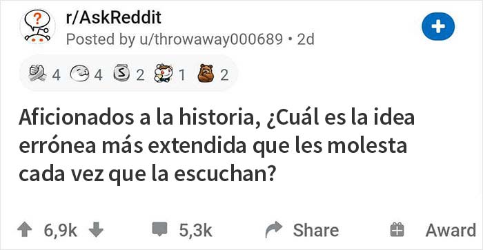 La semana pasada, el redditor u/throwaway000689 decidió averiguar cuáles de estos mitos son los más populares y preguntó a otros usuarios de la plataforma: "Aficionados a la historia, ¿Cuál es la idea errónea más extendida que les molesta cada vez que la escuchan?". La gente comenzó inmediatamente a enviar sus respuestas y aportó valiosas ideas sobre nuestra ignorancia colectiva.