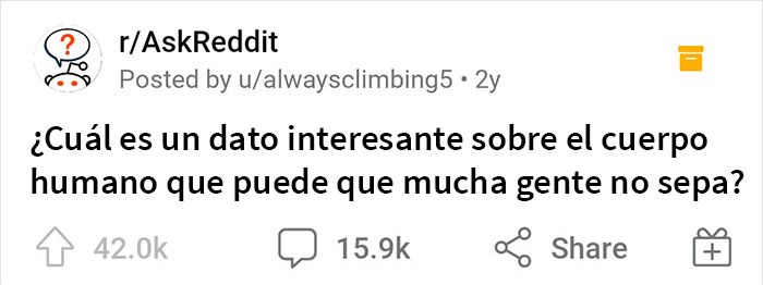 Por esa razón, Alwaysclimbing5, un usuario de Reddit, les pidió a los demás internautas que compartieran datos interesantes sobre el cuerpo humano que puede que mucha gente no conozca. Los lectores respondieron con información fascinante, desde el hecho de que nacemos con costillas extra hasta cuán sensibles son las narices al olor de la lluvia, por lo que hemos recopilado las respuestas más interesantes para que puedan leerlas. Esperamos que disfruten esta dosis diaria de biología y que puedan aprender algo nuevo sobre ustedes mismos. No se olviden de votar por los datos que los hayan sorprendido y, luego, si quieren saber todavía más sobre el cuerpo humano, pueden echarle un vistazo a este otro artículo de Bored Panda.