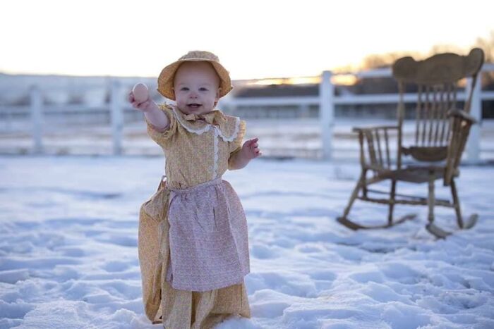 Ooohhh que cuqui, la niña está ideal para una fiesta de disfraces temática de la "Casa de la Pradera".