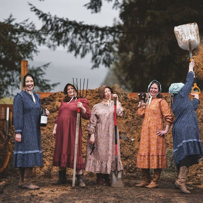 Creo que Margaret se arriesgó un poco en su decisión de hacer alarde de esa costura de encaje. Después de todo, somos mujeres modestas en la granja. Las miradas no deseadas de los hombres son impías. Las provisiones empezaban a escasear. Teníamos que salir a buscar comida. Caminando cuesta arriba, en ambos sentidos en la nieve como nuestros antepasados una vez lo hicieron. Margaret fue capaz de mantenernos a salvo con su fiel 22 y su ojo de lince para disparar. Pudimos hacer la cena de un elegante ganso que alimentará a la parentela durante quince días. Ordeñamos las cabras y batimos un poco de mantequilla y festejamos. Por último, nuestro gimnasio local nos permitió hacer algo de ejercicio físico para mantener nuestra salud y nuestro espíritu.