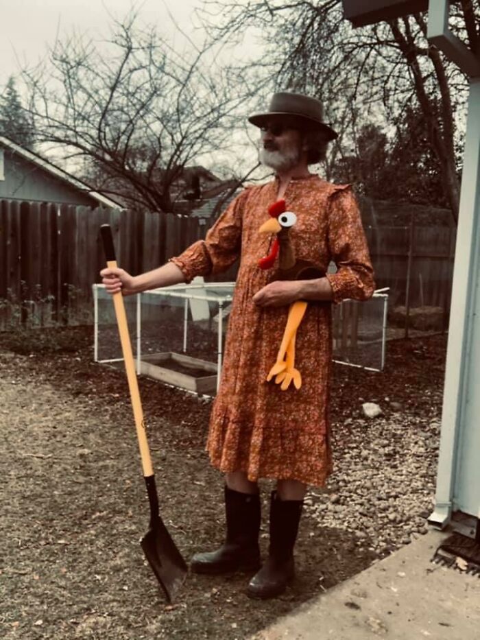 La gente se decantó por un look de granja pandémica, también conocido como La casa de la pradera, publicando sus fotos con el vestido mientras llevaban el ganado, trabajaban la tierra y hacían otras tareas típicas de la granja. Pronto se convirtió en una tendencia viral con familias enteras que se subieron al carro para reírse.