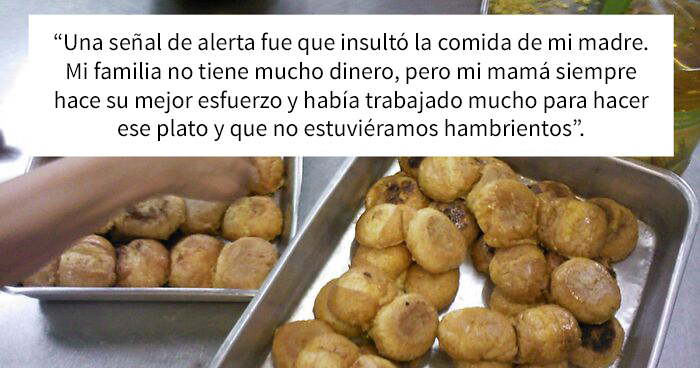 Recordándolo, una señal de alerta fue que insultó la comida de mi madre. Mi familia no tiene mucho dinero, pero mi mamá siempre hace su mejor esfuerzo y había trabajado mucho para hacer ese plato y que no estuviéramos hambrientos. Pero esta persona solo lo insultó. Y nunca le agradeció.