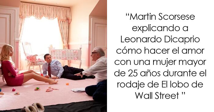 Martin Scorsese explicando a Leonardo Dicaprio cómo hacer el amor con una mujer mayor de 25 años durante el rodaje de El lobo de Wall Street (2013)
