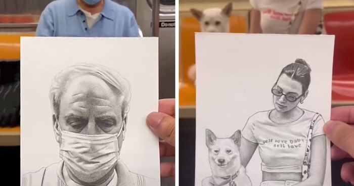 Un artista neoyorquino es conocido por dibujar a los pasajeros del metro sin que se den cuenta y luego publicar su reacción en Internet (25 nuevas fotos)