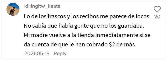 Me guardo todos los recibos de compra en caso de que ocurra algún problema con lo que he comprado y tenga que devolverlo. Alex nunca lo hace porque si lo que compró tiene alguna falla, simplemente comprará otro producto nuevo.