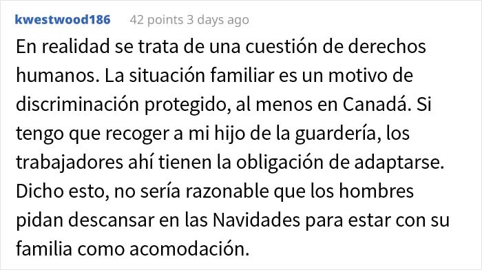 Una vez me negaron el tiempo libre del día de Navidad que había solicitado con meses de antelación para poder viajar a casa con mi familia.