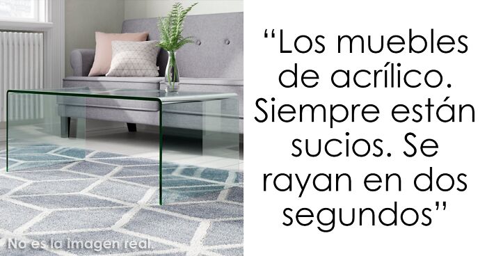 Algo que nunca compraría son los muebles de acrílico. Sé que esto es súper controversial y que a la gente le gustan; pero, para mí, siempre están sucios. Se rayan en dos segundos. Siento que, si lo miro, se raya. Y no es a prueba de manchas. Así que, para los niños y para mí: no, gracias.